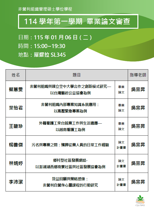 論文|114學年度第1學期 畢業論文審查口試公告(三)