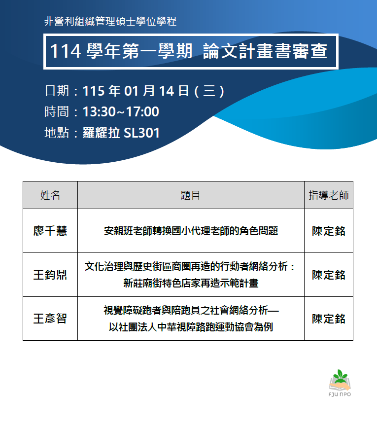 論文|114學年度第1學期 論文計畫書審查口試公告(二)