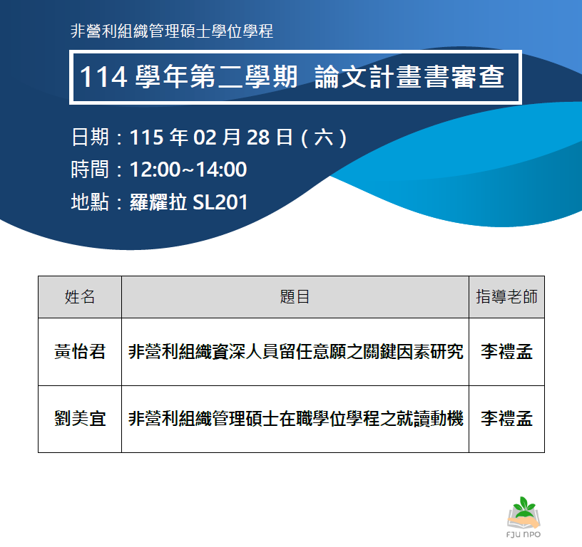 論文|114學年度第2學期 論文計畫書審查口試公告(一)